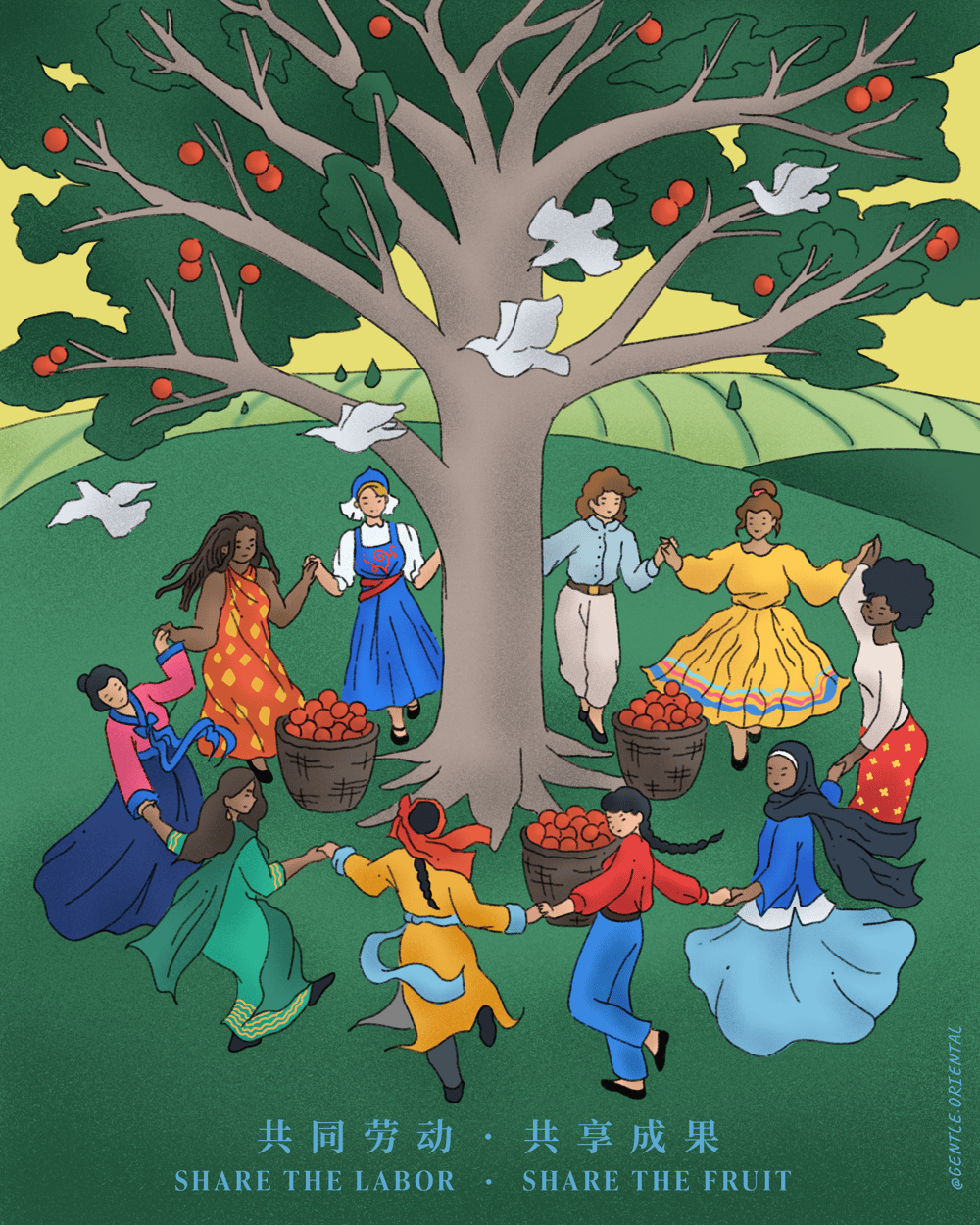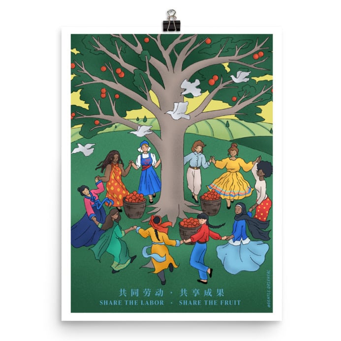 12x16" Poster inspired by vintage Chinese propaganda. Dreaming of a more socialist society in the US where people actually cared about each other as well as the end of toxic capitalism.
